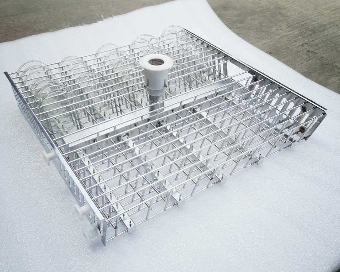 器皿直接放置在籃框內(nèi)。培養(yǎng)皿清洗籃架通過噴針全方位噴射水柱沖洗器皿。針對直徑為90mm的培養(yǎng)皿,一層籃架可放置約90個,兩層約放置180個。