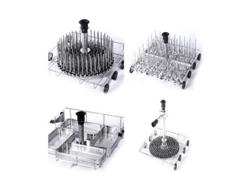 實驗室器皿需要根據不同結構(燒杯、錐形瓶、容量瓶、樣品瓶、采樣瓶、試管、移液管、色譜進樣小瓶、頂空進樣瓶等)尺寸和容量(2ml、10ml、100ml、......)等以及需要清洗的器皿數量進行分類。根據這些信息可以選擇我們家族合適的實驗室全自動洗瓶機及定制清洗籃架來滿足需要。